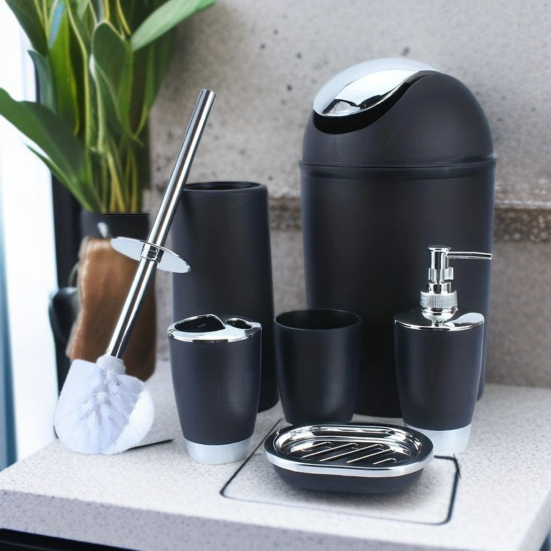 เซ็ตอุปกรณ์ห้องน้ำพลาสติก 6 ชิ้น สำหรับจัดระเบียบห้องน้ำ